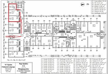 Irodaházunk földszintjén a 6-7-8-as számú klimatizált irodák és tárgyaló (18,30+18,30+12 m2, összesen 48,6 m²) egyben bérelhető.